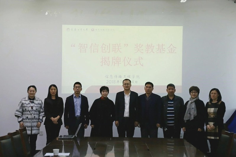 信息传播工程学院与长春智信创联科技有限公司于教图楼八楼会议室成功举办了“智信创联”奖教基金揭牌仪式。此次参加揭牌仪式的有:副校长王颖、校友工作办公室主任兼对外联络办公室主任王春阁、长春智信创联科技有限公司总经理王慧家校友、学校领导班子、教学秘书、办公室主任、数字媒体技术全体专业老师、其他部门教研室主任、副主任、书记、部分学生代表,会议由学院党委副书记倪宏哲主持。