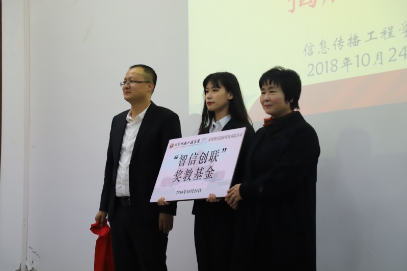会上,首先介绍了“智信创联”奖教基金的基本内容,然后由王校长与长春智信创联科技有限公司总经理王慧家为奖教基金揭牌。王慧家在会议上发表了饱含深情的讲话,抒发了对母校的无限情怀和深情厚意。他表示将以“智信创联”奖教基金为平台,逐步加大捐赠力度,为母校教育事业的发展贡献自己的力量。除此之外,他还作为表率为信息传播工程学院捐款一万元。