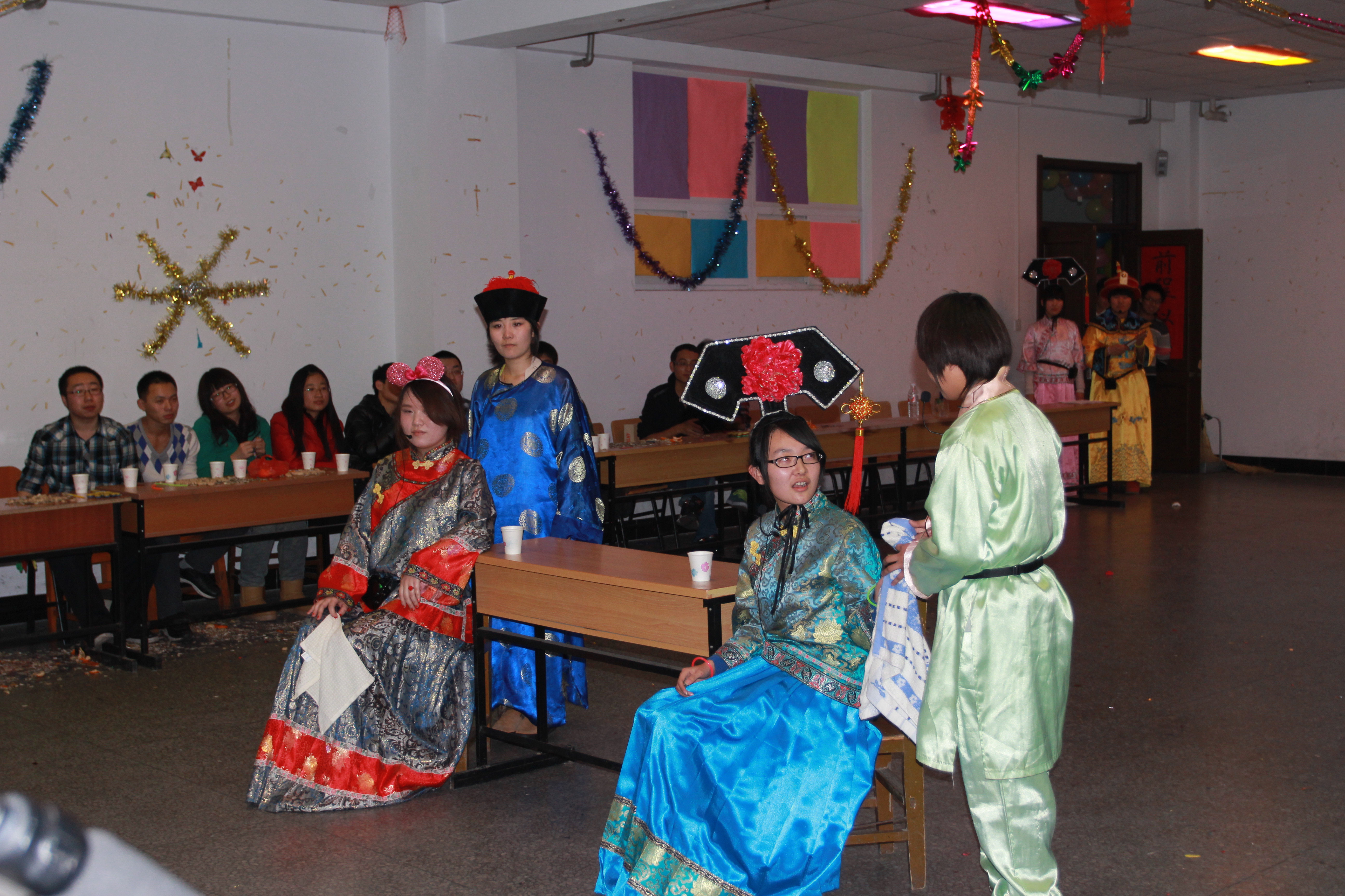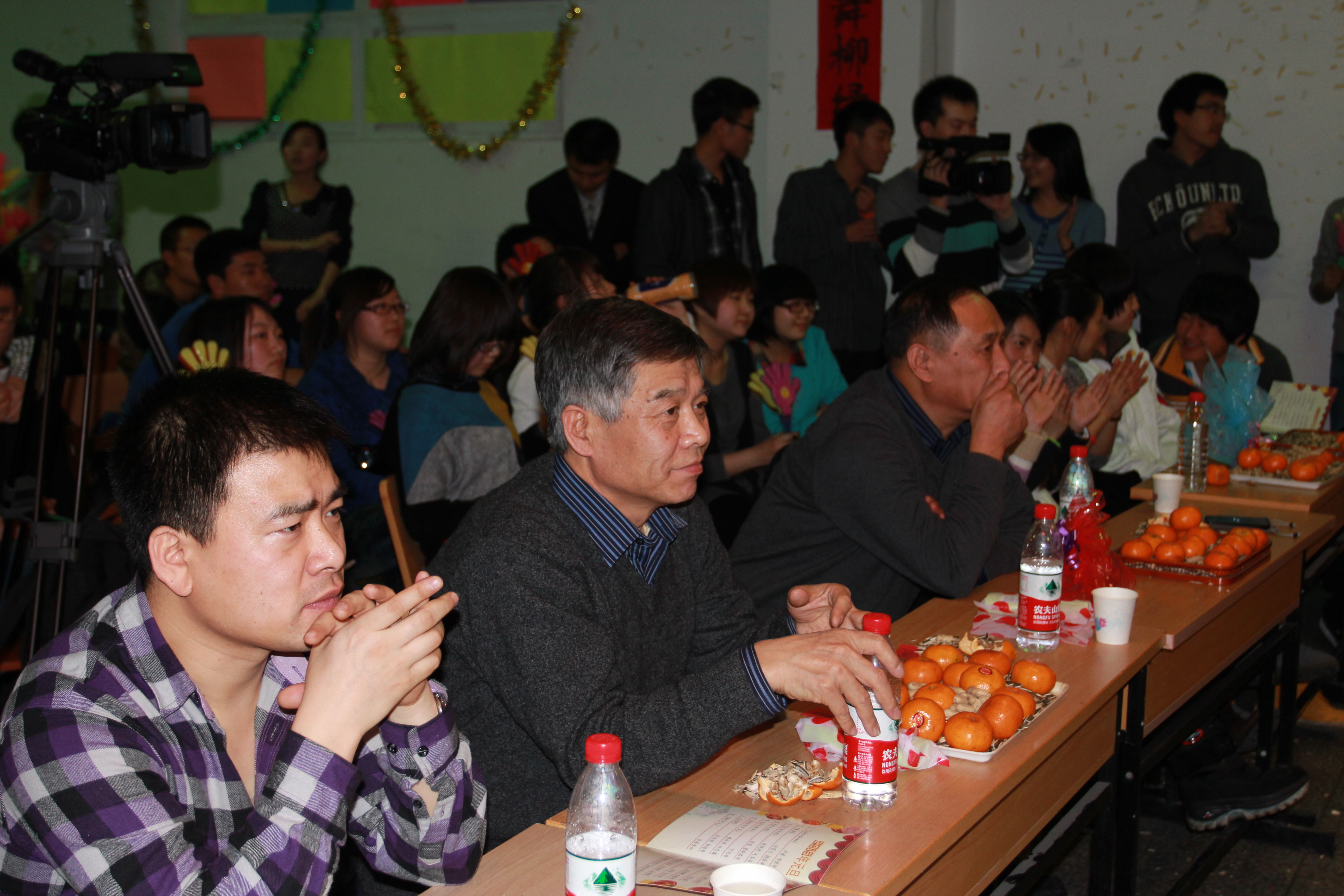 同学们的精彩表演给在场师生带来了阵阵欢笑。校纪委书记李德民向晚会致辞,表达了新年祝福和殷切希望。晚会过半,热气腾腾的饺子让在场的师生感到了浓浓的团圆的味道,与此同时我们通过视频看到的各届毕业生送来的新年祝福和问候,感动了在场的师生。最后,晚会在全体12级学生和班导师合唱的《相亲相爱》中缓缓落下帷幕,同学们纷纷与到场的领导老师合影,留下新春的纪念。
