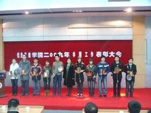 大会在庄严的国歌声中拉开了帷幕。首先,由信息传播工程学院院长朱丽莉老师宣读了表彰决定。然后,与会的领导和嘉宾分别为获奖的集体和个人办法了证书和奖品,并合影留念。表彰包括单科状元、优秀学生干部、文明大学生,文明寝室、文明班级等九项个人和集体奖项。接着由信息传播工程学院党委书记李志权老师对sm调教