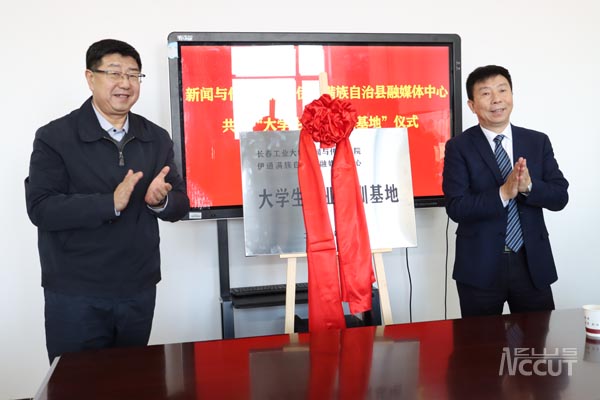副院长吴德胜与伊通满族自治县融媒体中心负责人李和签订了共建协议。孙长智与孙立阳为校地共建“大学生就业实训基地”揭牌。张明耀为受聘客座教授颁发了聘任证书。