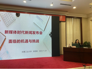 副院长管媛辉副教授和网络与新媒体系教师张鹏霞受邀为此次培训开展专题讲座。管媛辉老师以《新闻发言人媒体应对能力提升》为题,从突发事件中新闻传播的功能、紧急情况下新闻传播媒体的策略和应急新闻下新闻传播机制的构建这三个方面进行了详细的讲解。张鹏霞老师做了题为《新媒体时代新闻发布会面临的机遇与挑战》的专题讲座,从机遇和挑战并存的视角重点讲解了新媒体技术语境下新闻发布工作呈现的特点,并立足于吉林省新闻发布实践工作提出相应建议。讲座内容充实,生动精彩,为相关部门的新闻发布工作赋能增效。