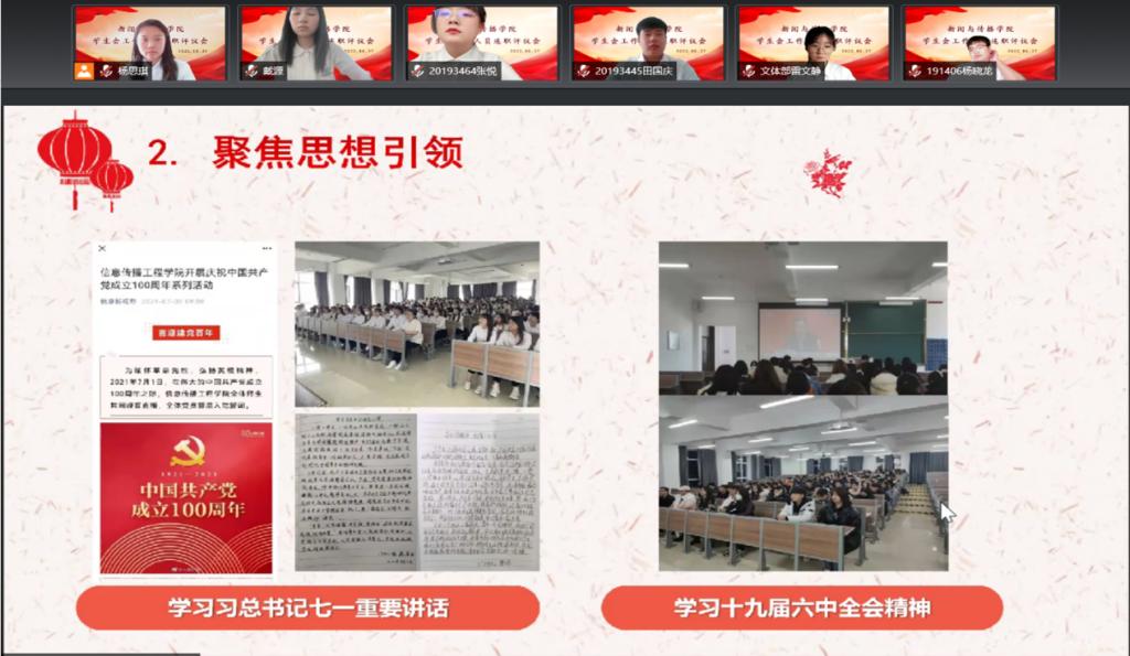 最后,学生团委工作负责人崔悦了总结会议内容。崔悦指出此次述职报告评议会大家准备充分,述职报告圆满结束,各部负责人在今后的工作中也将继续努力、不断进步,认清自身的身份定位,更好地为大家服务,为学院学校高质量发展贡献自己的力量!